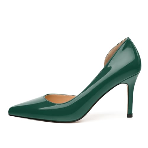 MODENCOCO High Heels for Women Pointed Toe Stiletto Pumps Classic Closed Toe Slip On Heels Patent Porm Party Wedding Dress Shoes 3 Inch 5