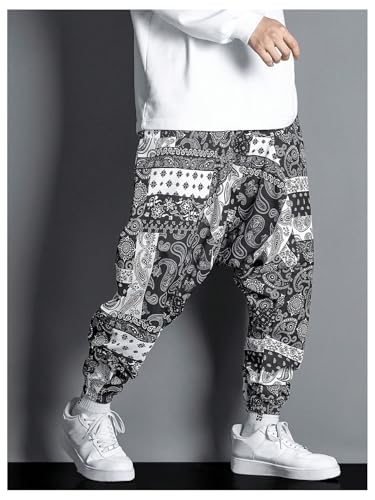 • Paisley print, drawstring waist, wide leg, slant pocket, fashionable baggy sweatpants men