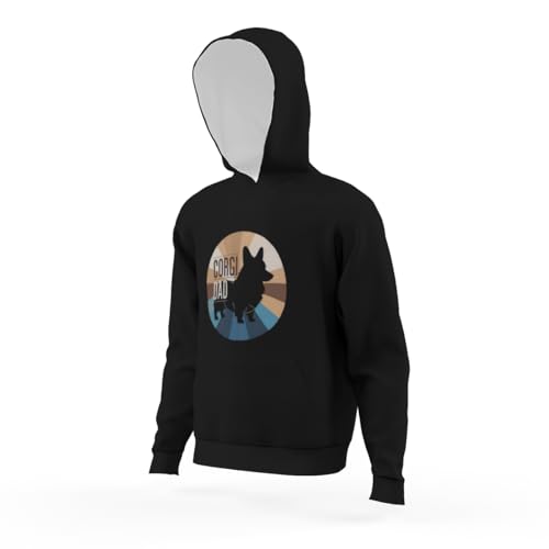 HOT ! Silhouette Of Corgi Dad Retro Hoodies for Teen Girls Boys Lightweight Kangaroo Pocket Sweatshirt