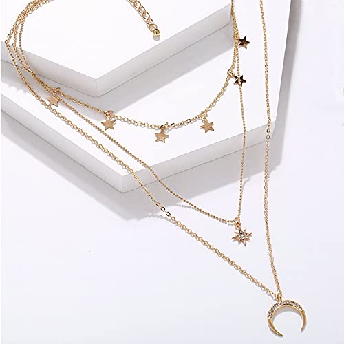 RINHOO FRIENDSHIP 4-6Pcs Multiple Layered Necklaces for Women Choker Necklace with Moon Star Coin Gold Sliver Chain Necklace Jewelry for Women 2
