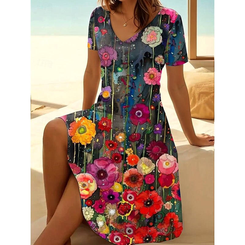 More information about Women's Mini Dress T Shirt Dress Tee Dress Sundress A Line Dress Vacation Casual Boho Going out Beach Regular Fit Floral Graphic Short Sleeve V Neck Black Light Green Blue Sky Blue Summer Spring