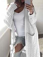 More information about Women's Sweater Cardigan Casual Soft Pure Color Cable Open Front Pocket Knitted Long Sleeve Long Tops Knit Outdoor Daily Weekend White Pink Fall Winter