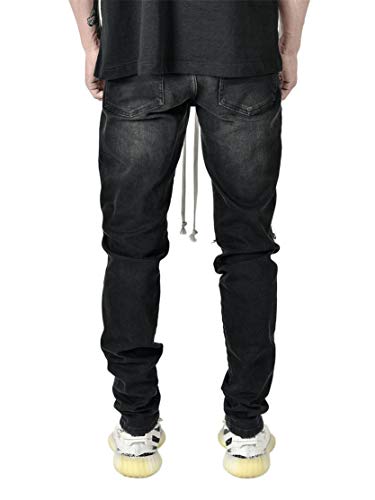 More information about Generic Men's Vintage Ripped Patch Jeans Printed Pattern Skinny Biker Denim Pants Hip Hop Skinny Check Patchwork Jean Trousers (Black,Large)