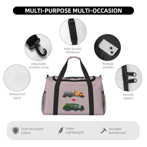 • Measuring an impressive 50x33x26 cm (19.7x13x10.2 inches), this I Love Garbage Trucks Print travel duffle bag offers ample space to accommodate all your essentials from clothing and electronics to personal items. for weekend getaways, business trips, or daily use.