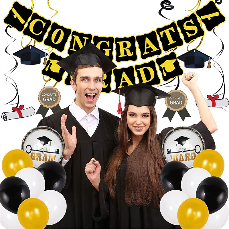 2022 Graduation Balloon Graduation Party Balloon Scene Layout Round Aluminum Film Latex Combination Graduation Pull Flag Decorative Balloon 1