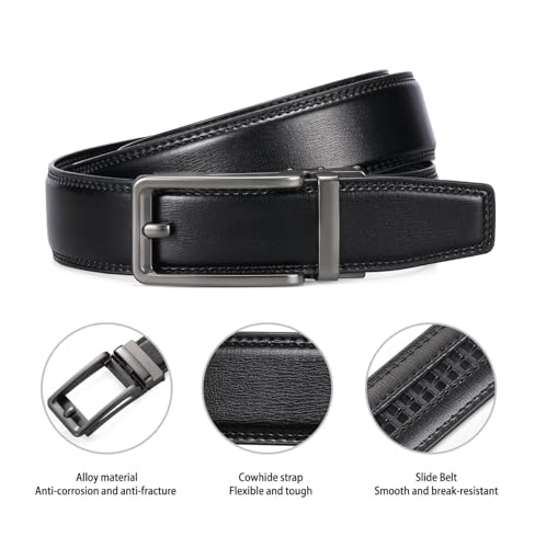 Men's Leather Belt Automatic Ratchet Buckle Slide Belt - Trim to Fit Dress & Casual Belts with Gift Box 1