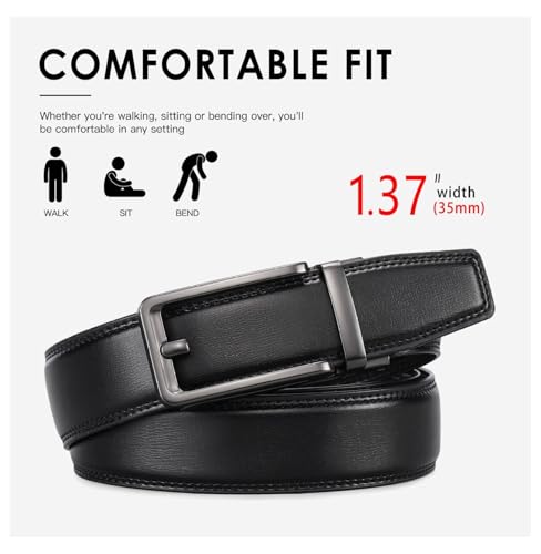 Men's Leather Belt Automatic Ratchet Buckle Slide Belt - Trim to Fit Dress & Casual Belts with Gift Box 2
