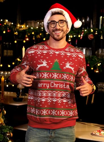 • OCCASIONS: Decked out in vivid colors & funny Xmas elements, it's not only perfect for Christmas but also for Festive Cheer, Dates or Parties! The stylish sweater would be a perfect gift for your dad, husband, boyfriend, or yourself.