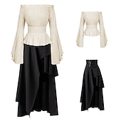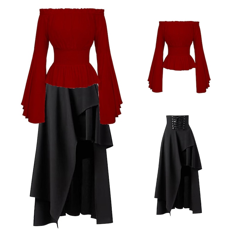 More information about Elegant Punk & Gothic Medieval Skirt Blouse / Shirt Party Costume Normal Flare Cuff Sleeve Maid Costume Pirate Viking Off Shoulder Classic Mermaid / Trumpet Collarless Fancy Dress Women's Celtic