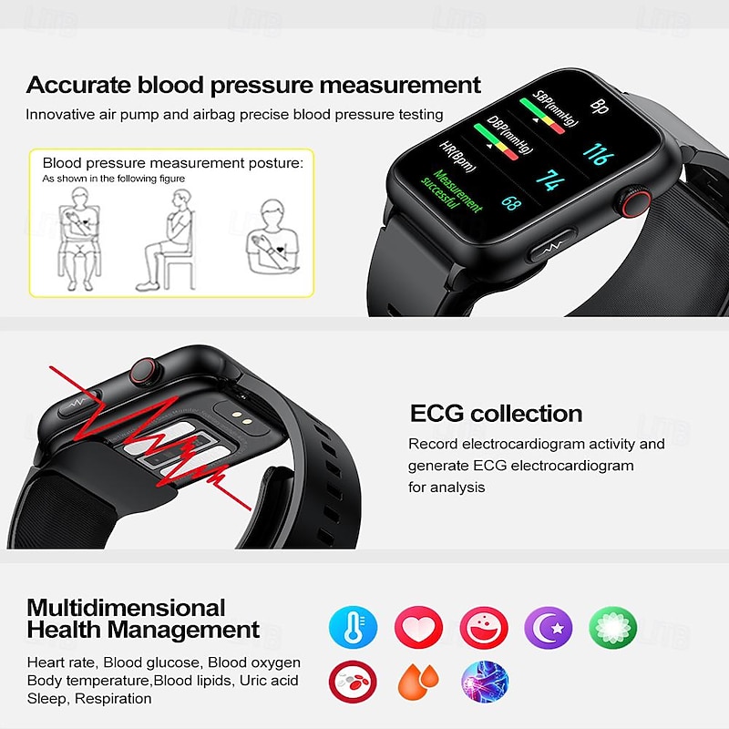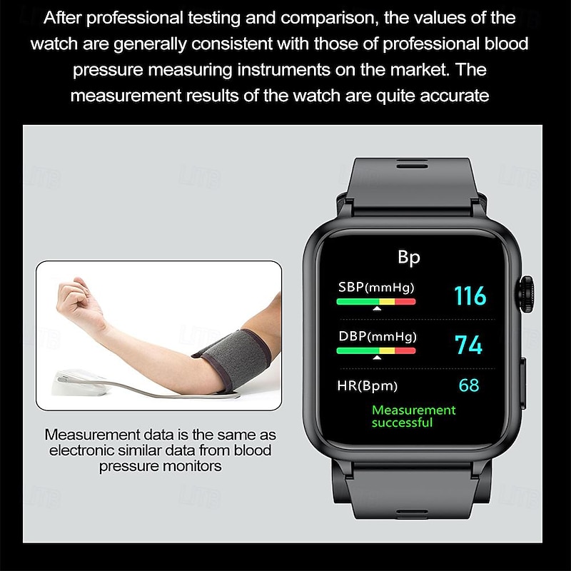 More information about Air Pump Airbag Type Accurate Blood Pressure Testing ECG electrocardiogram Temperature Monitoring Pedometer Compatible with Android iOS Women Men Long Standby