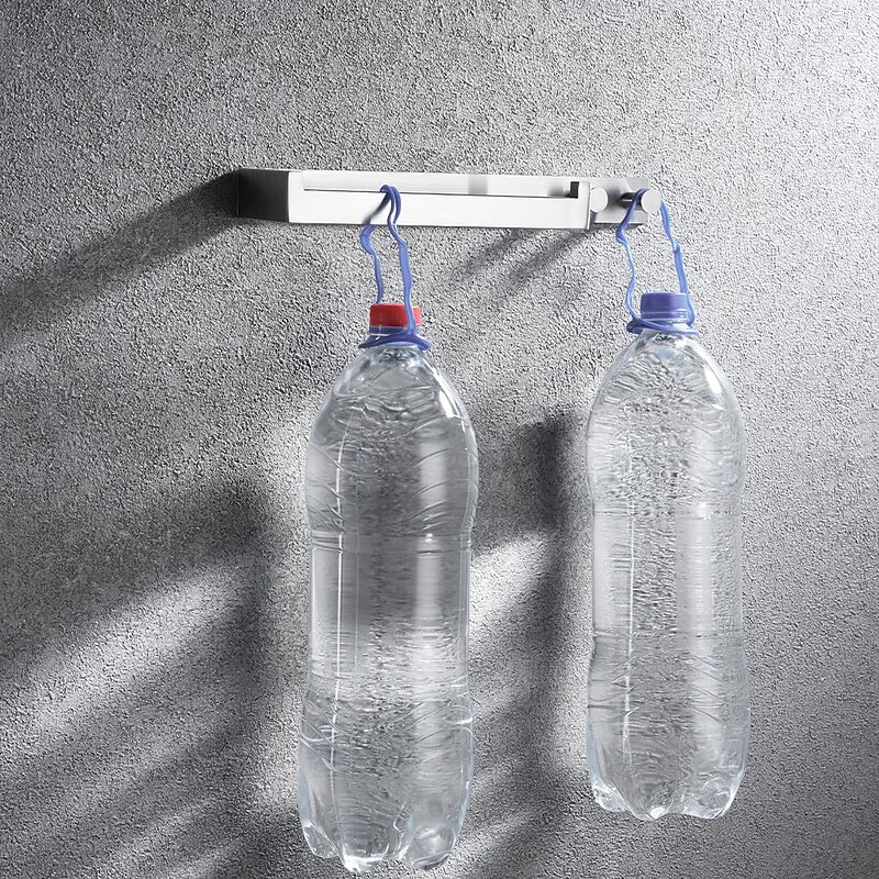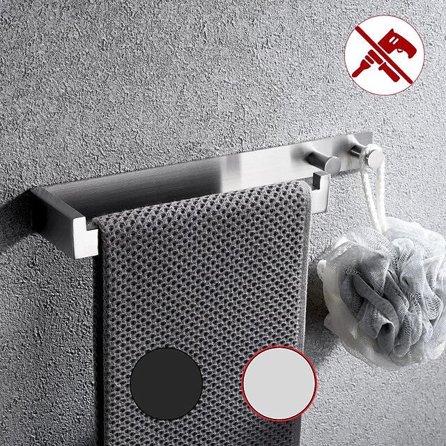 HOT ! Multifunctional Towel Bar with Coat Hooks Punch-free Self-adhesive Bathroom Shelf Stainless Steel Brushed Silver and Black 1pc