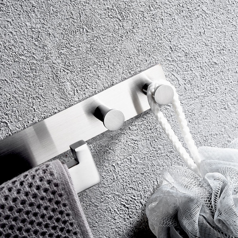 Multifunctional Towel Bar with Coat Hooks Punch-free Self-adhesive Bathroom Shelf Stainless Steel Brushed Silver and Black 1pc 2