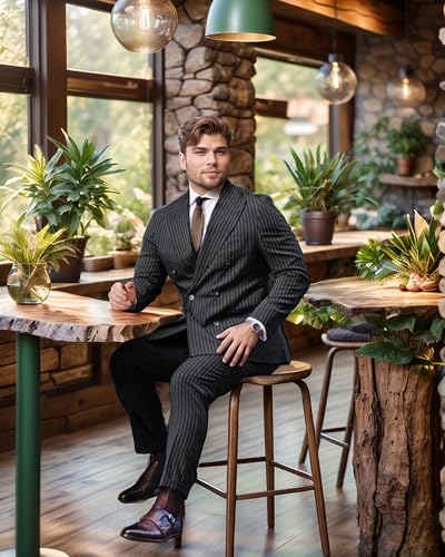 Men’s Pinstripe 2 Piece Suit Big and Tall Double Breasted Formal Wedding Tuxedo Suit
