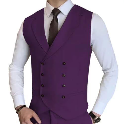 Men’S Solid Double Button Suit Vest Double Breasted V-Neck Formal Waistcoat For Wedding Birthday Banquet