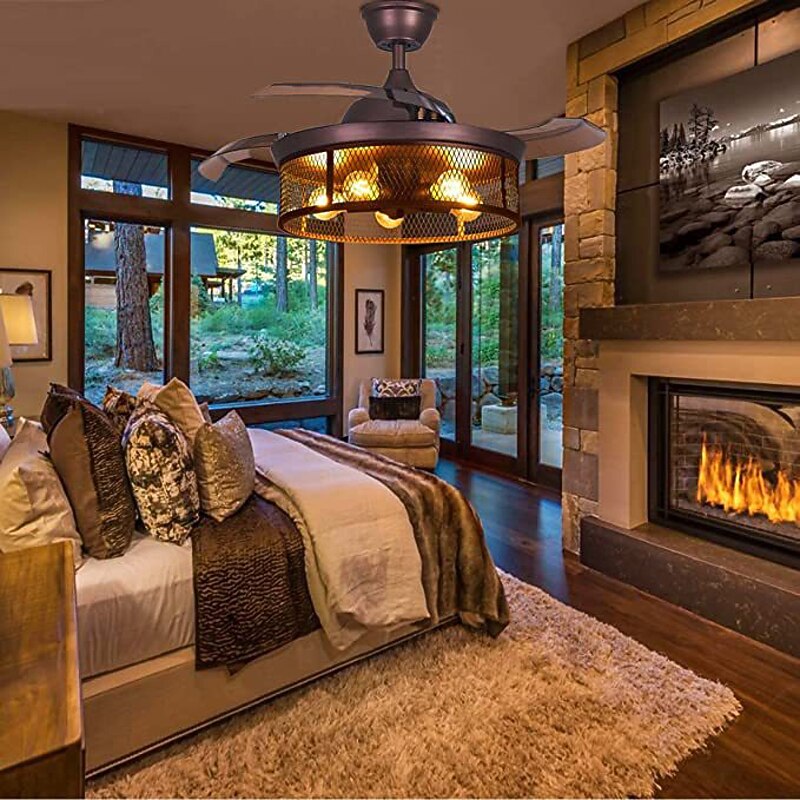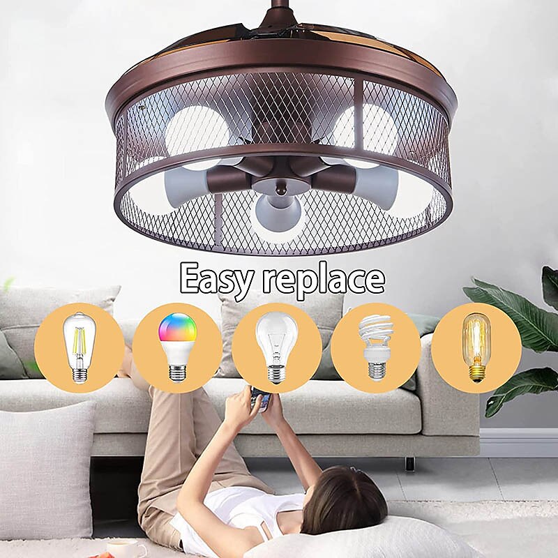 More information about Ceiling Fans with Lights 5-Light 19.5" Dimmable Retro Design Ceiling Lights Metal Artistic Style Modern Style Novelty Painted Finishes Black 85-265V