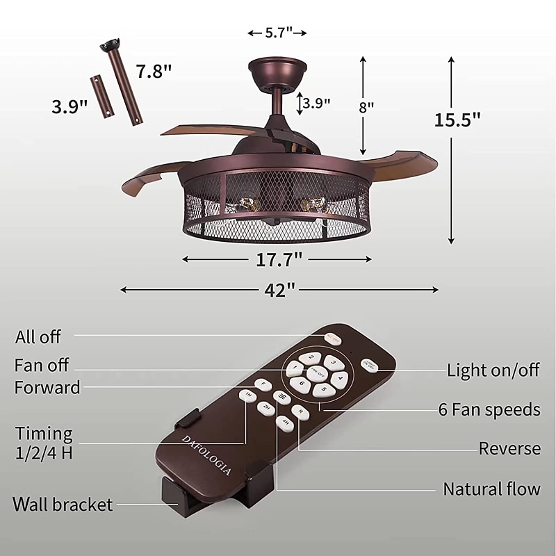 HOT ! Ceiling Fans with Lights 5-Light 19.5" Dimmable Retro Design Ceiling Lights Metal Artistic Style Modern Style Novelty Painted Finishes Black 85-265V