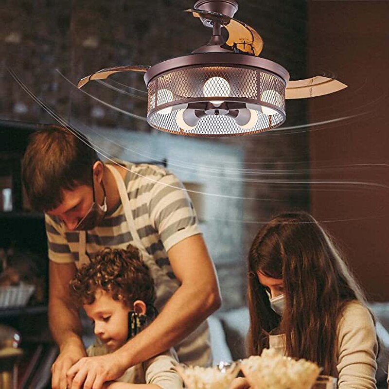 Ceiling Fans with Lights 5-Light 19.5" Dimmable Retro Design Ceiling Lights Metal Artistic Style Modern Style Novelty Painted Finishes Black 85-265V 6