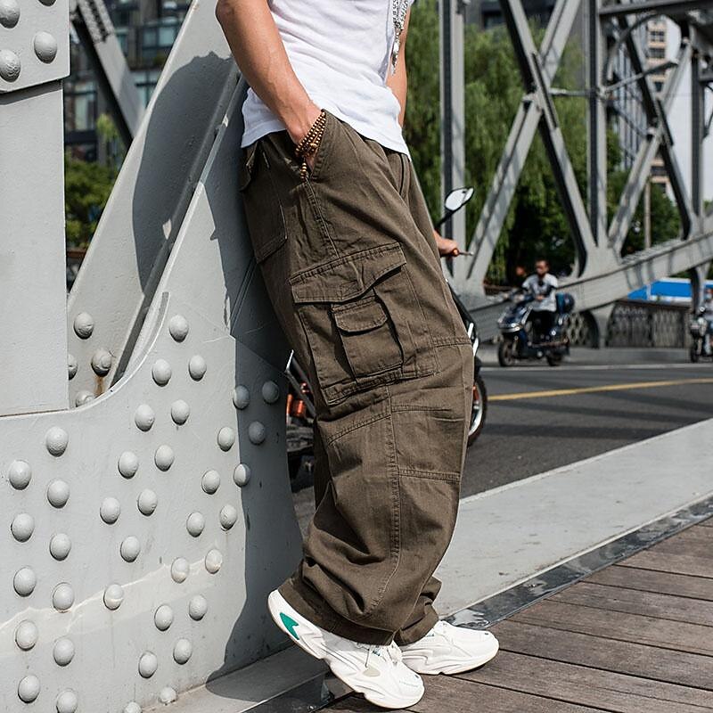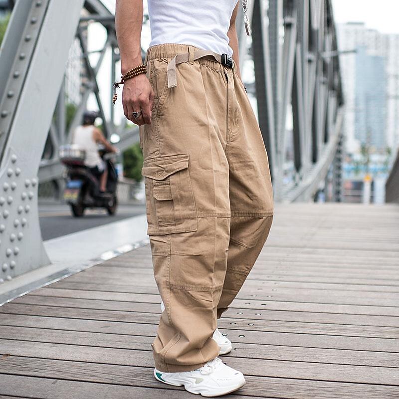 Highlights [Fabric] : Crafted from 100% durable cotton, these men's cargo pants offer both breathability and comfort, ensuring they remain wearable and soft against the skin during various activities. [Fit] : Designed with a regular fit, these trousers offer a comfortable and relaxed silhouette, allowing ease of movement for daily wear or outdoor adventures. [Design Highlights] : The tactical pants feature multiple large cargo pockets, providing ample storage for everyday essentials, while the straight leg cut adds a classic touch. The inclusion of buttons and an elastic waistband with an adjustable belt ensures a secure and adaptable fit for different waist sizes. [Occasions] : Ideal for daily wear, outdoor activities, camping, and hiking, these versatile pants pair well with a variety of tops and footwear, making them a staple addition to a casual wardrobe. [Size Range] : Available in a wide range of sizes, from S to 4XL, these cargo pants accommodate various body types, ensuring a comfortable fit for everyone.