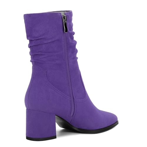 More information about Women's Mid Calf Boots, Chunky Heel Pleated Calf Boots for Women, Fashion Pointed Toe Side Zipper Mid Heel Women's Boots,Women Shoes for Workpalce, Street and Banquet.