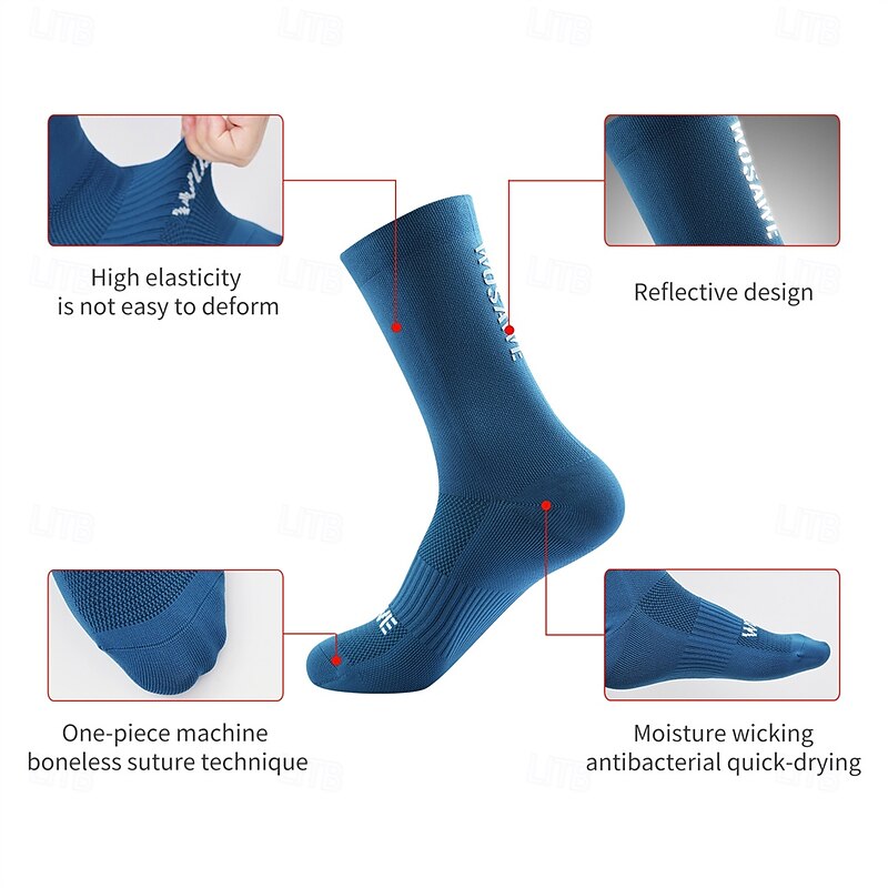 WOSAWE cycling sports reflective socks road cycling mid-calf sports socks men's and women's models breathable leisure cycling socks BE001 5