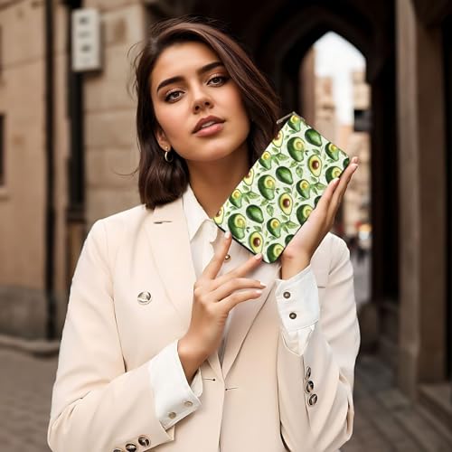 HOT ! Green Leaf Avocado Print Wallet Women Men, Long PU Leather Wallets for Women, Cute Womens Travel Wallet Purse Pouch with Zipper Pocket