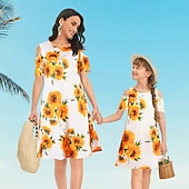 More information about Mommy and Me Dresses Floral Street Print White Short Sleeve Above Knee Active Matching Outfits