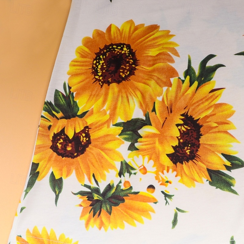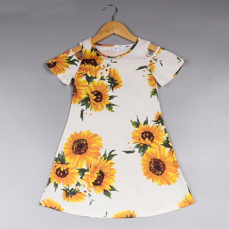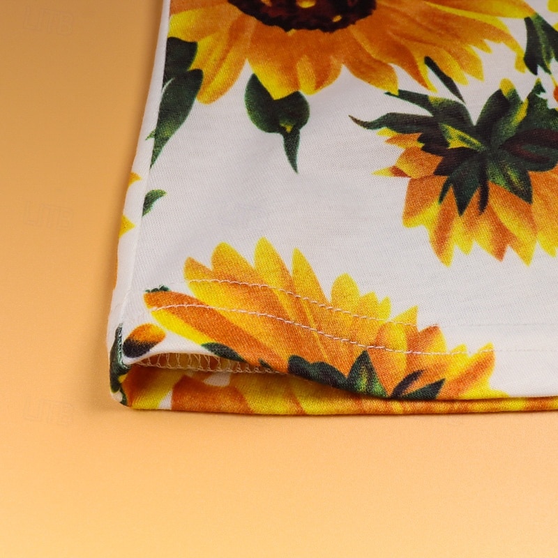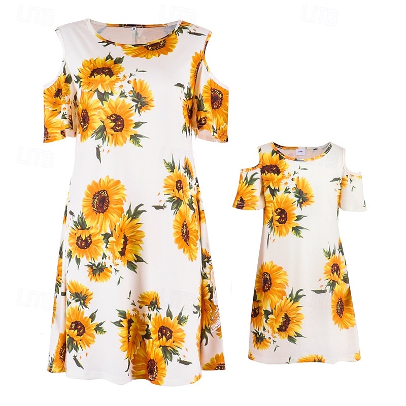 Mommy and Me Dresses Floral Street Print White Short Sleeve Above Knee Active Matching Outfits 17