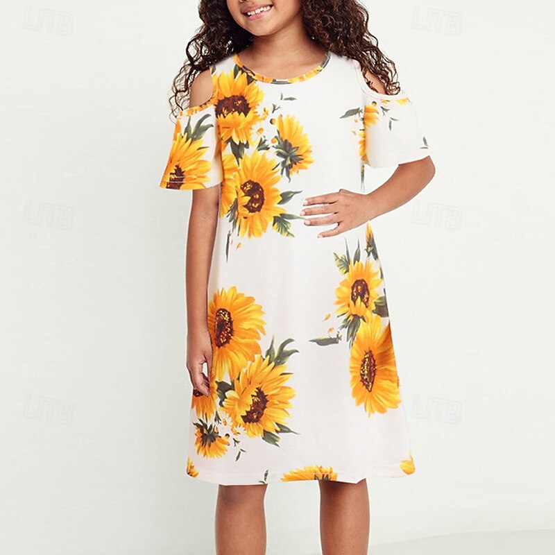 Mommy and Me Dresses Floral Street Print White Short Sleeve Above Knee Active Matching Outfits 14