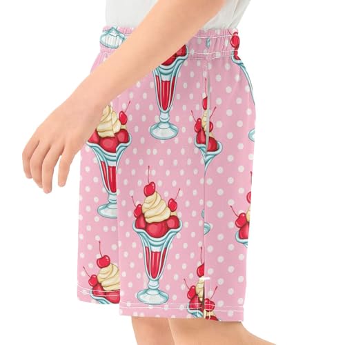Cherries Ice-Cream Athletic Shorts with Zipper Pockets, Youth Boys Athletic Running Shorts for Summer 4