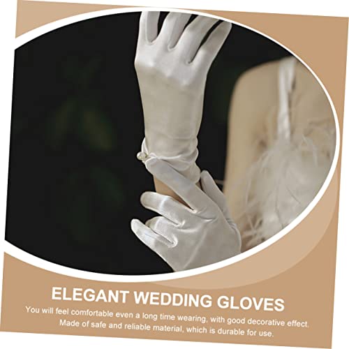 FRCOLOR 1pair Elegant Satin Bridal Gloves for Wedding Party and Prom Comfortable Gloves Bead Accent for Engagements and Special Events 7