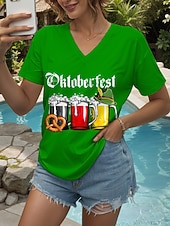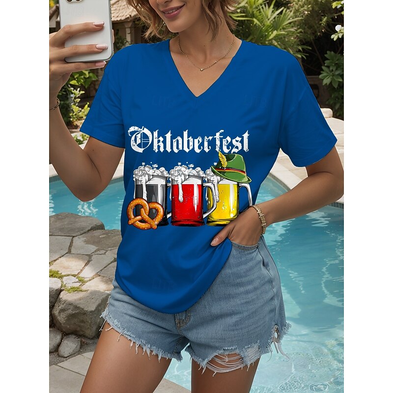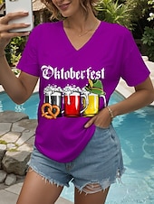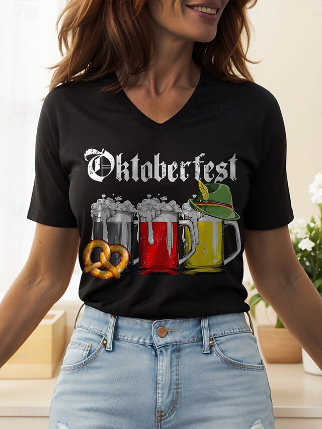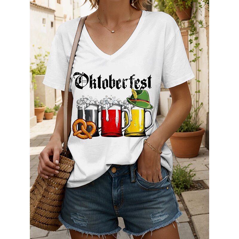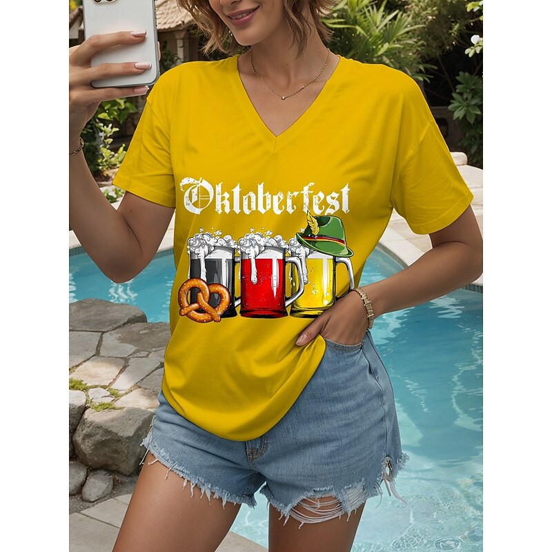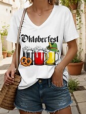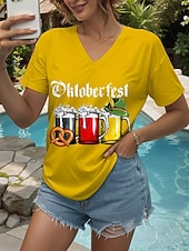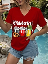 More information about Oktoberfest Women's T Shirt Graphic Letter Vintage Stylish Classic Short Sleeve V Neck Regular Tops Daily Print Black White Yellow Red Blue Summer Spring