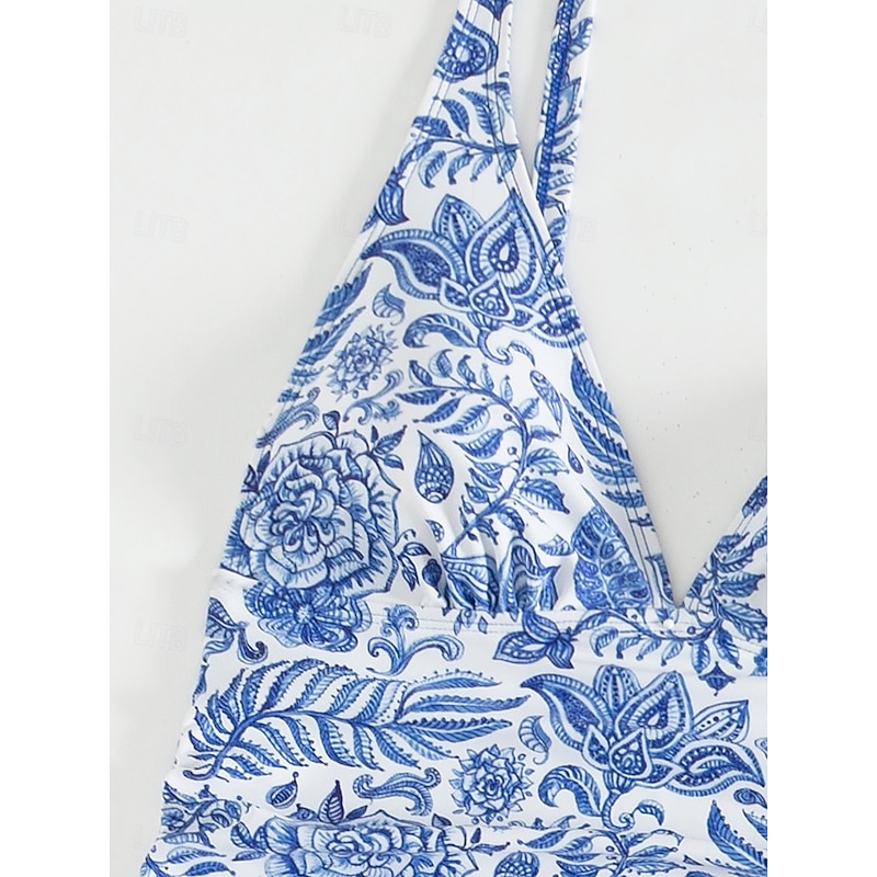 More information about Women's Swimsuits Bikini 2 Piece Cheeky Swimsuit Backless Slim Vacation Beach Wear Floral Halter Neck Sleeveless Bathing Suits