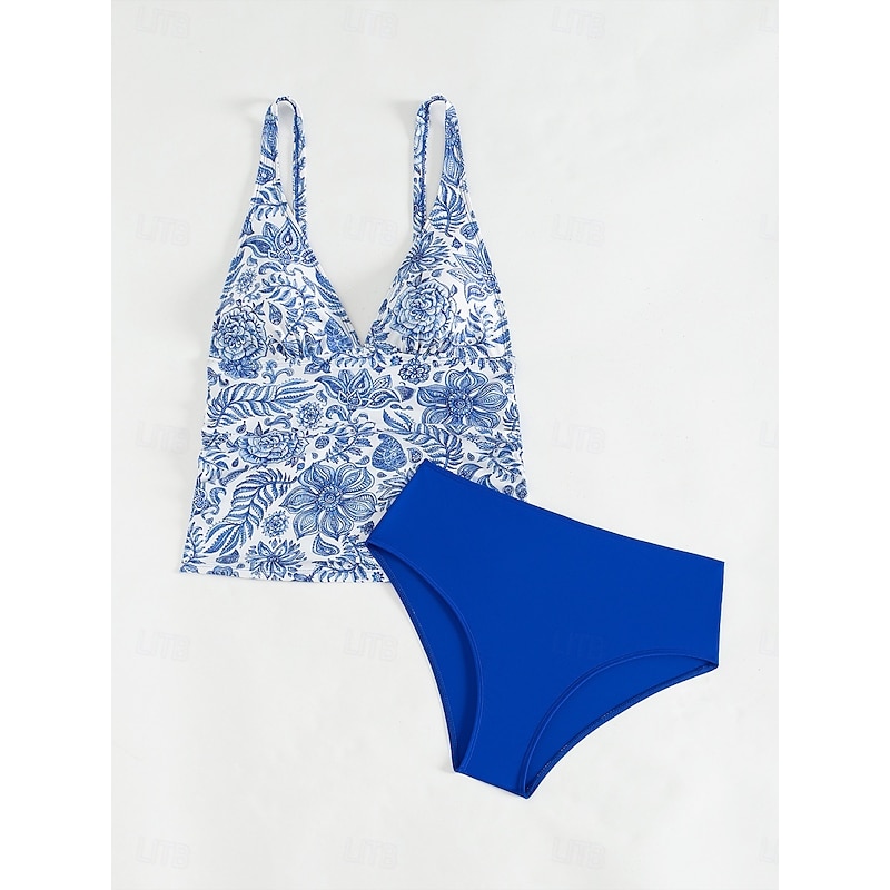 Women's Swimsuits Bikini 2 Piece Cheeky Swimsuit Backless Slim Vacation Beach Wear Floral Halter Neck Sleeveless Bathing Suits 24