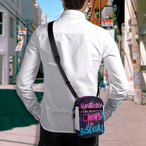 HOT ! Nobody Knows I Am Bisexual Women's Cute Small Mini Crossbody Bag Top Zip Sling Square Shoulder Bags