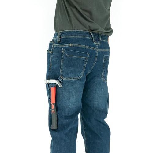 • Durable Material: Built to endure tough jobs, these jeans feature high-end stitching, bar tacks in stress areas, a brass-locking YKK zipper, and double-heel fabric reinforcement to resist wear and fraying for long-lasting performance.