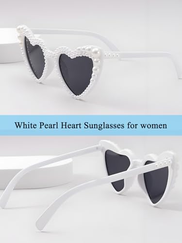 • [Secure & Featherlight] - The white pearl heart sunglasses design with a 1.9oz ultra-lightweight frame. It's lighter than lipstick! Keep stable whether you dancing or cheering!