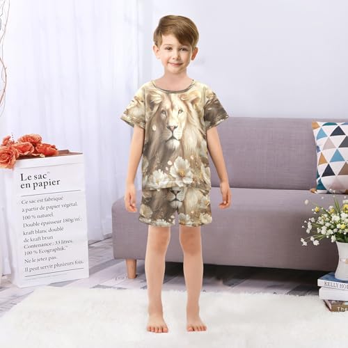 ALAZA White Lion Blossom Animal Pajamas Set Short Sleeve Cotton Sleepwear Summer Pjs 2 Piece 5-14Y 6
