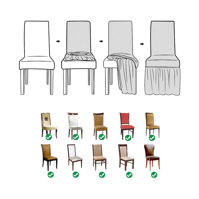Wedding Dining Chair Covers Slipcover with Skirt, Washable Seat Covers Protector for Dining Chair Hotel Ceremony Wedding Party Kids Pets, Stretch Spandex Fabric