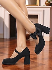 More information about Women's Burgundy Suede Mary Jane Heels with Bow Accent – 1950s Retro Block Heel Party Shoes for Christmas,Vintage Cocktail Party and Elegant Street Fashion