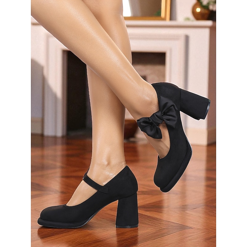 Women's Burgundy Suede Mary Jane Heels with Bow Accent – 1950s Retro Block Heel Party Shoes for Christmas,Vintage Cocktail Party and Elegant Street Fashion 9