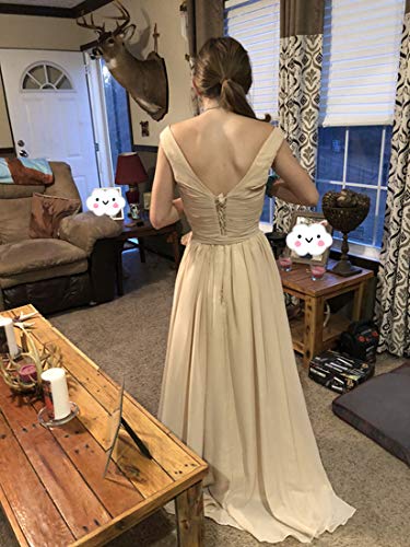 More information about V Neck Bridesmaid Dresses Long Split Chiffon Pleated Wedding Evening Prom Gown for Women Champagne Size 8