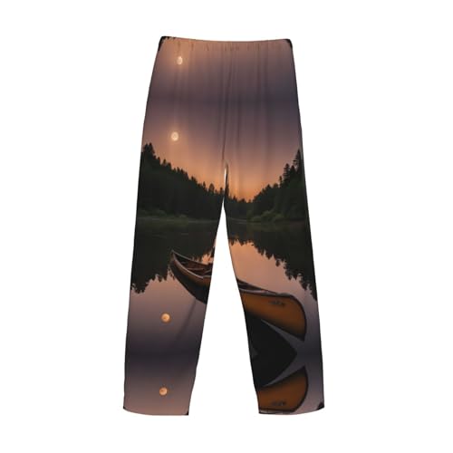More information about Moonlit Canoe Allagash River Print Men Relaxation Pajama Pants Soft Lightweight Lounge Bottoms With Drawstring Pants