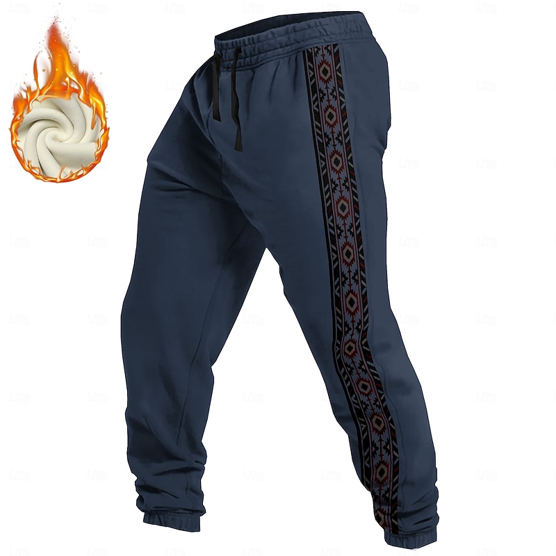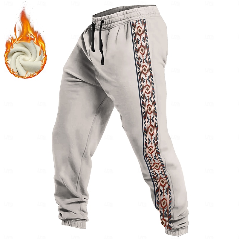 More information about Men's Aztec Ethnic Sweatpants Trousers Fleece Sweatpants Drawstring Elastic Waist Vintage Casual Outdoor Holiday Streetwear Warm Fleece Lined Thermal Winter 3D Print Light Gray Black Wine
