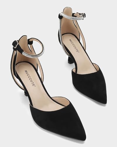 MUCCCUTE Kitten Heels for Women Closed Pointed Toe Heels Rhinestone Ankle Strap Elegant relaxing Dressy Wedding Party Work Pumps