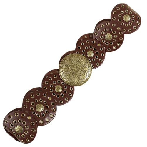 More information about Women Western Cowboy Wide Disc Belts Leather Hollow Out Round Belts for Dress Jeans