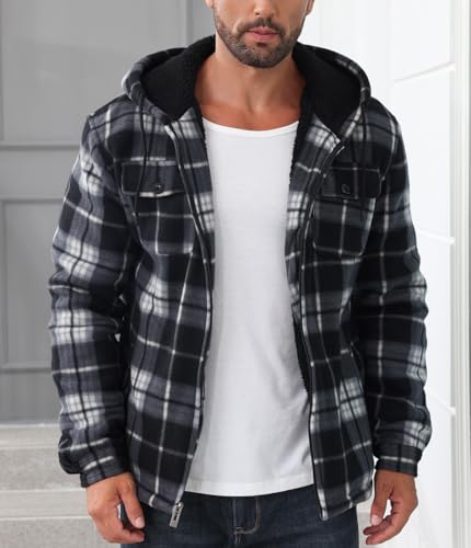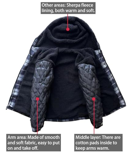 More information about Men’s Full Zip Up Hoodie Heavyweight Sherpa Fleece Lined Hoodies Flannel Warm Winter Plaid Jacket Thick Coat with Pockets