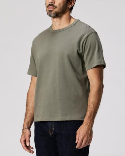 HOT ! Huckberry Flint and Tinder- The Surplus Shirt, Heavyweight Mens Cotton T-Shirt, Slightly Cropped, Boxy Fit Shirts for Men