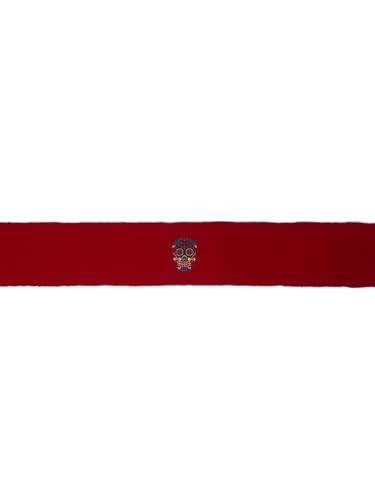 Mexican Traditional Sugar Skull Embroidered Kids Belt, Red multicolored embroidery