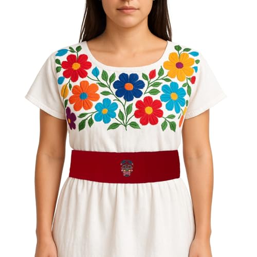 Fabric type: Elastic Cotton BlendCare instructions: Hand Wash Cold, Line Dry, Do Not BleachOrigin: Made in the USATRADITIONAL DESIGN: Authentic Mexican faja belt featuring vibrant sugar skull (calavera) embroidery on rich red fabricKIDS' SIZE: Specially designed children's belt with adjustable tie closure for a snug, customizable fitDECORATIVE DETAIL: Colorful embroidered skull design incorporates traditional elements like flowers and hearts in turquoise, blue, and yellowVERSATILE WEAR: Perfect accessory for traditional celebrations, dance performances, or adding cultural flair to everyday outfitsCONSTRUCTION: Made from durable red fabric with detailed embroidery work, featuring a wide band design for proper support Perfect for everyday use. superior materials and excellent craftsmanship ensure long-lasting durability.