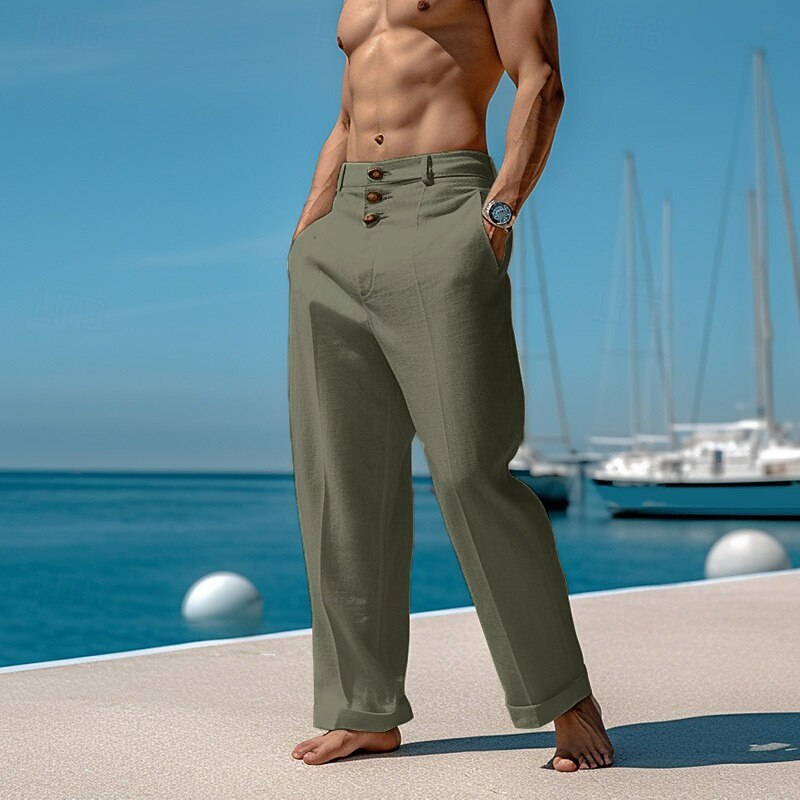 More information about Men's Linen Pants Trousers Summer Pants Beach Pants Front Pocket Straight Leg Plain Comfort Breathable Casual Daily Holiday Fashion Basic Black White